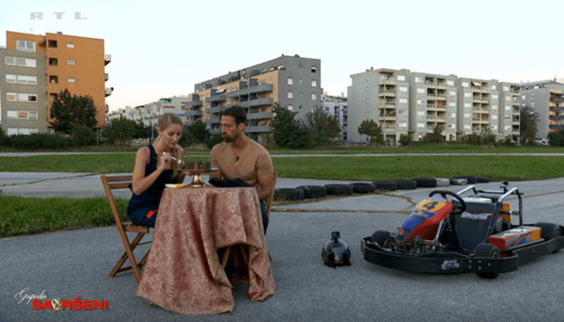 Goran ostavlja djevojkama pismo u kojem ih poziva na carting. Djevojke su u vozilima i Goran ih lupa po glavi prije nego krenu. Pa što smo pričali o nasilju nad ženama, Gorane? U utrci je pobijedila Anezi, a za nagradu mora voziti zavezanih očiju, dok je Goran navodi. Želi testirati njezino povjerenje i svoj hrvatski. Goran Anezi: Ispruži desnu ruku, malo više. (Gorane, ne znam kako je u Njemačkoj, ali to je ovdje nacistički pozdrav.)